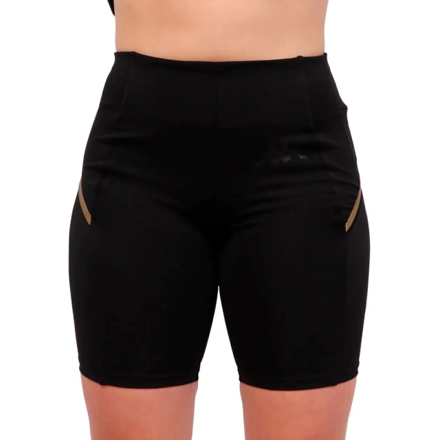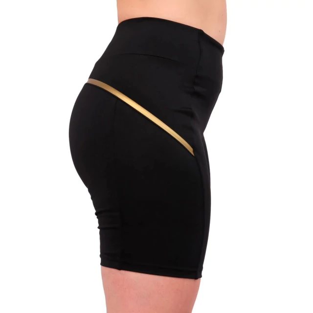 Calza corta con cintura alta y bolsillo lateral con cierre.